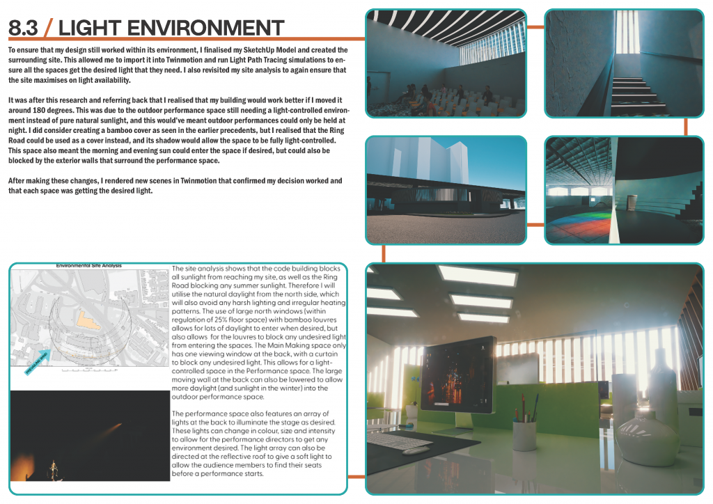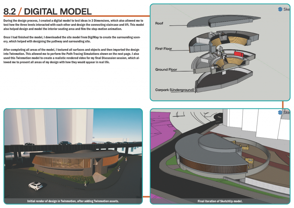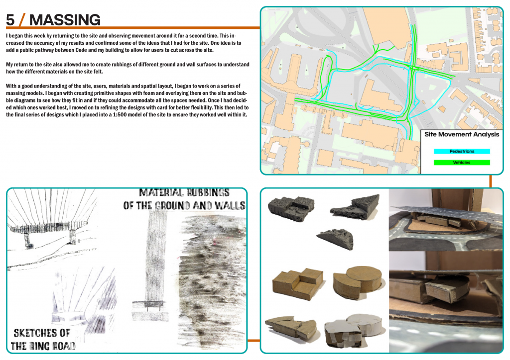 This project gave me an opportunity to explore and work in areas that I hadn’t explored before, particularly building regulations. The project also offered a chance to collaborate with others whilst still being an individual project, which aided the design development.